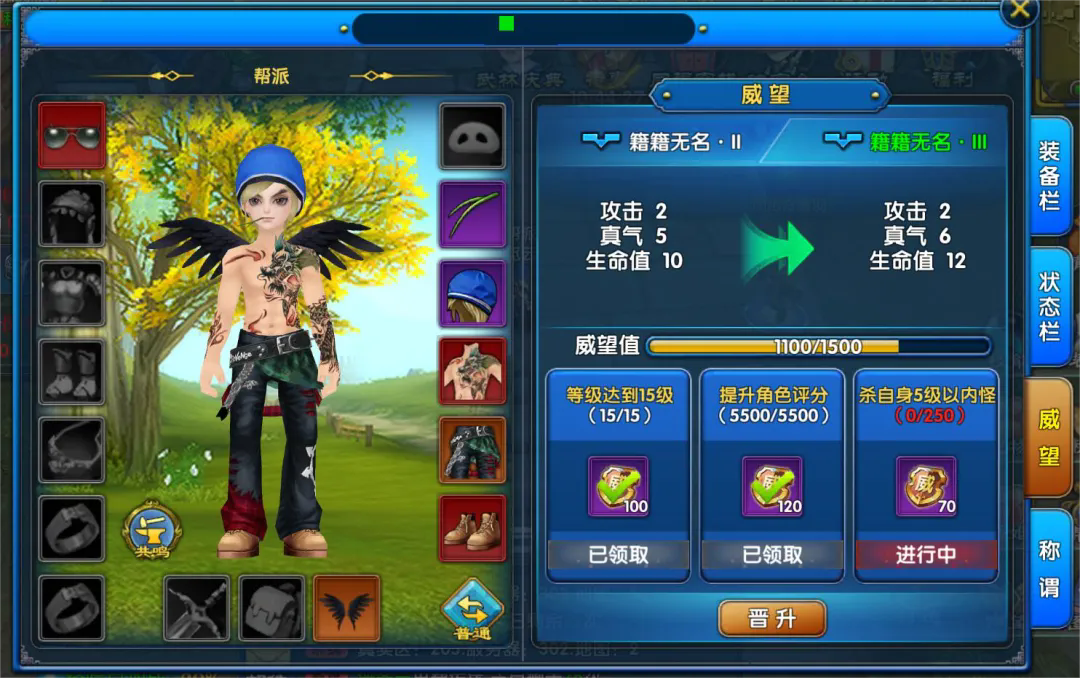 进阶篇1、前期菜鸟技能中被动铁拳一定要点满,增加的基础攻击力收益较大。 ![]() 2、背包中的威望系统,可进入查看任务目标,等级、角色评分类任务正常推进都可达标,第三类的指定击杀、活动任务需注意不要错过。 ![]() 3、前期等级提升较快,10级武器装备精炼无需进行大幅提升,精炼+3足够进行正常任务。 4、一转技能加点将被动和轻功点满,输出技能选择一个加满即可,这里散人职业不推荐学习群攻技能。 5、20级后通过武林之路获得BT武器后尽量提升精炼等级,但升到30级所需时间也较短,30级武林之路任务可获得新的BT武器。 6、30级之前任务优先进行主线及武林之路任务。每日任务优先级可靠后,悬赏任务中在条件允许的情况下尽量接取至尊及以上品级任务,高品级获得的奖励将更加丰富。 7、30级后完成二转任务,并且拥有一套30级精炼+5的装备(绿色装备即可,商店可购买),这时可以围绕日常任务和挂机进行提升。这时可在首领系统中关注各类首领的刷新时间,提前前往等待刷新,建议和小伙伴们组队前往,可大大提高成功率。击杀首领不仅可以获得材料、装备,还能激活图鉴系统中的对应图鉴,集齐图鉴并激活可获得属性加成。 ![]() 8、二转后的技能加点以被动和伤害类技能为主,前面节省的技能点刚好派上用场。后续等级奖励中将赠送全技能洗点符,可留到60级再使用。 9、绑定元宝不要随意使用,尽量用在悬赏任务刷新上,有多余的话可用于押镖中,100绑定元宝一次的高级马车,不仅获得大量经验,获取的宝箱还可以开出宠物升级进阶的道具。 10、30级后升级只能依靠每日任务和挂机刷怪,可以选择高战力的队伍挂机,这样可以挑战高级的怪物。 11、30级后的声望材料保留至40级在杏子林、八里庄、烙印之塔中全部捐出,声望达标后外加10金可购买40级罡气装备。这里就可以将罡气套装精炼至+5。 ![]() 12、40级武林之路获得的BT武器折凳,这时提升武器精炼配上罡气装备,刷怪做任务已经畅通无阻。此时身上装备属性石镶嵌可尽量全部选择攻击石,这样会加快刷怪速度。 13、50级武林之路获得的BT武器苍蝇拍,可以精炼至+7以上,搭配50级绿色+7装备,可以组队抢首领BOSS,通过BOSS奖励获取50级传说武器和装备材料。 声明:此篇为《武林外传:十年之约》官方网站原创文章,转载请标明出处链接:http://110syw.com/sys-nd/227.html